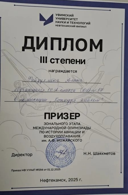 Сегодня наши ребята принимали участие в зональном этапе Международной олимпиады по истории авиации и воздухоплавания им. А.Ф Можайского. В итоге победителем является Файзуллина Алина 10а ( учитель Нуртдинова В.И.), призёры Герасимова Ольга 8а (учитель Нуртдинова В.И.) и Амирханов Тимур 7г (учитель Сальникова К.А.). Файзуллина Алина 10а является так же призёром в конкурсе эмблем этой олимпиады.