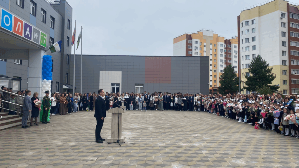 Торжественная линейка началась с трогательного ритуала подъёма флагов Российской Федерации и Республики Башкортостан, символизирующего единство и патриотизм. Затем слово было предоставлено уважаемым гостям и педагогам. Директор школы Роман Тагирович Ганиев приветствовал всех присутствующих, отметив важность этого дня для учеников, учителей и родителей.