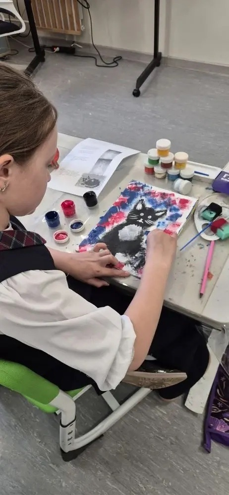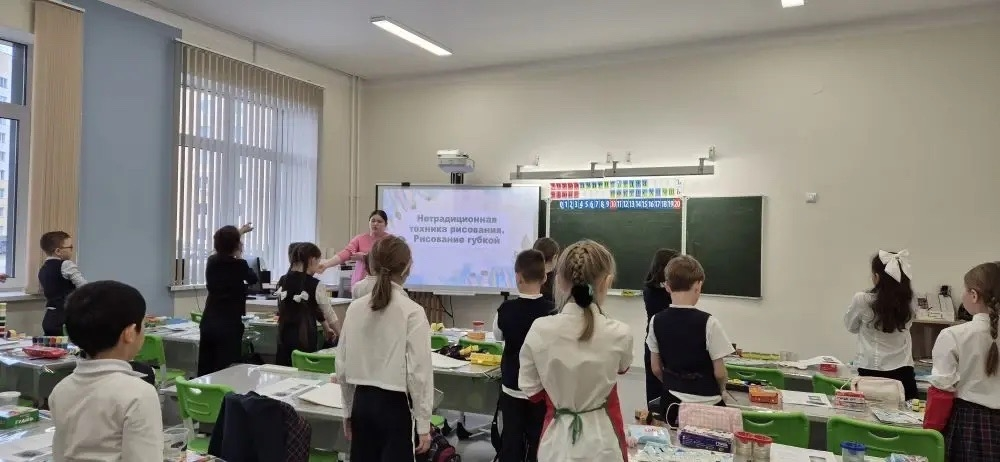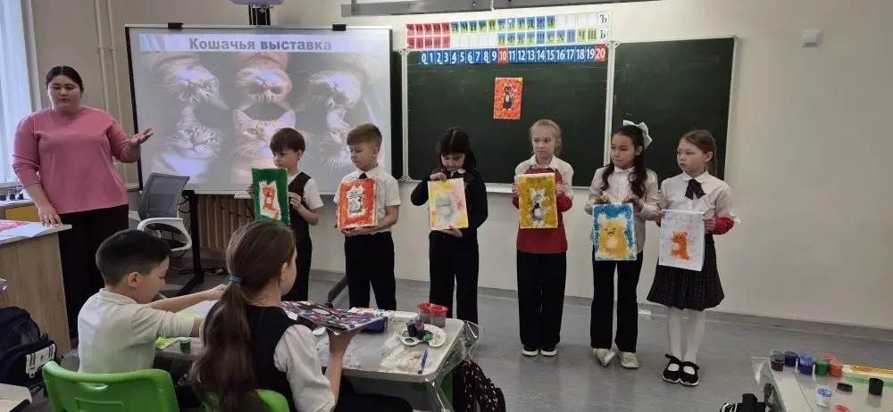 В рамках декады, посвященной художественно-эстетическому циклу, состоялось интересное событие. Молодой педагог Зарипова А.Д. провела открытый урок по изобразительному искусству для 2 «б» класса. Тема урока была посвящена необычным способам рисования, а именно – созданию изображений с помощью губки. Началось занятие с увлекательного знакомства с различными техниками рисования, как привычными, так и теми, что используются реже. После небольшой разминки в виде загадки, ребята погрузились в основную тему. Учитель подробно рассказала и показала, как можно изобразить кошку, используя губку, и объяснила все тонкости работы с этим материалом. Для того чтобы каждый ученик мог успешно справиться с заданием, Зарипова А.Д. подготовила специальные конструкционные карты. Эти карты служили своеобразным путеводителем, помогая детям шаг за шагом следовать процессу рисования. Педагог продемонстрировала индивидуальный подход к каждому ребенку, уделяя внимание их потребностям. Не обошлось и без активных перерывов: для развития мелкой моторики была проведена пальчиковая гимнастика, а для поддержания энергии – физминутка. Каждый этап создания рисунка сопровождался четкими объяснениями и наглядными демонстрациями со стороны учителя. Завершилось занятие подведением итогов, обсуждением проделанной работы и рефлексией. В конце урока ученики смогли представить свои творения, а учитель дал им оценку.
