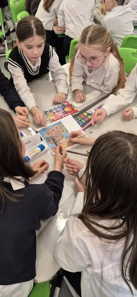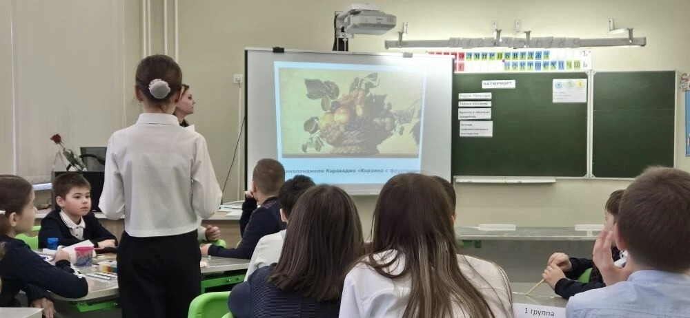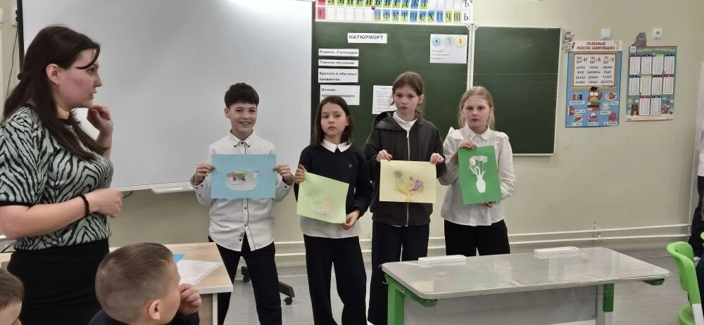 В рамках методической недели, посвященной предметам художественно-эстетического цикла, царит атмосфера творчества и позитива. Учитель начальных классов Вахрушева И.А. провела яркий и запоминающийся открытый урок по изобразительному искусству в 3г классе. Тема занятия – «Картина-натюрморт. Натюрморты известных художников. О чём рассказали натюрморты» – была раскрыта с большим энтузиазмом и вызвала у ребят искренний интерес. Урок начался с увлекательной беседы, которая плавно перетекла от обсуждения самого натюрморта к знакомству с миром музеев, их разнообразием и знаменитыми примерами. Особое внимание было уделено региональному компоненту: ребята рассказали о Картинной галерее «Мирас» в Нефтекамске. Вспомнили и о других жанрах живописи, что помогло детям лучше ориентироваться в мире искусства. Просмотр видеофрагмента стал отправной точкой для самостоятельного определения темы и целей урока самими учениками. Была установлена и межпредметная связь с русским языком, а также затронута тема «Разговора о важном», что подчеркнуло значимость искусства в жизни. Урок полностью соответствовал требованиям ФГОС, что позволило построить его по принципу «знаем – хотим узнать – научимся». Особый восторг у ребят вызвала работа в группах, где они перевоплотились в настоящие «детективные агентства». Им предстояло, опираясь на предложенные факты о натюрморте, выделить самое главное и, словно по уликам, научиться «читать» картины великих мастеров. Четвертая группа взяла на себя роль хранителей знаний, формулируя правила создания натюрморта. Следующим этапом стало творчество: дети с удовольствием создавали эскизы из готовых заготовок, а затем оживляли их цветом. Урок получился по-настоящему насыщенным, плодотворным и невероятно интересным. Богатый материал и активное вовлечение каждого ученика сделали его по-настоящему запоминающимся.